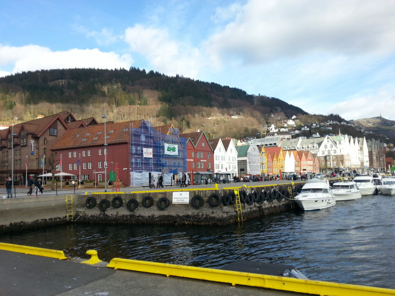 Mówi się, że w Bergen przez ponad 200 dni w roku pada deszcz. Kupując bilety lotnicze na kwietniową wyprawę nie myślałem w ogóle o pogodzie. Tym większym zaskoczeniem była dla mnie piękna, słoneczna aura, jaką zastałem tu po przylocie w sobotę, 18 kwietnia. Przez cały weekend (18-19.04.2015) towarzyszyło mi słońce i bezchmurne niebo. Warunki do robienia zdjęć i zwiedzania – idealne.