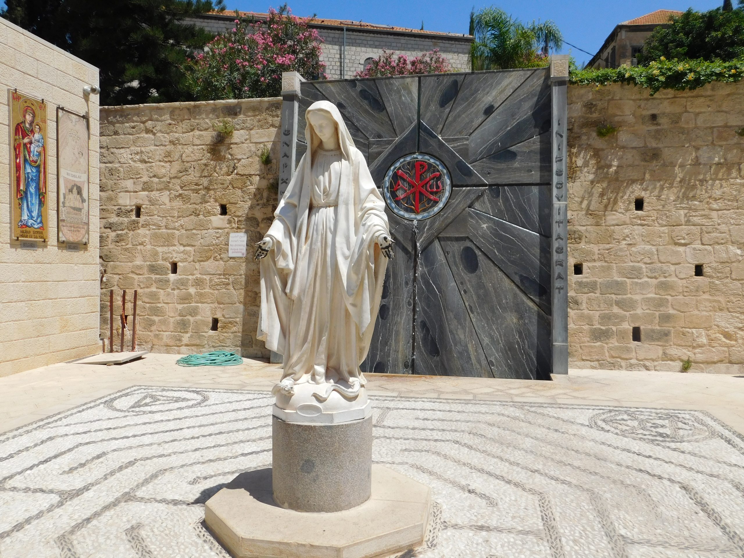 Chyba najważniejszym dla każdego katolika punktem wycieczki po Nazarecie jest wizyta w Bazylice Zwiastowania Pańskiego. Tę ogromną nowoczesną budowlę, powstałą w latach 60-tych, widać dobrze chyba z każdego punktu w mieście. Znajduje się w samym centrum Starego Miasta, w ogromnym kompleksie budynków należących do zakonu franciszkanów. Jest jedną z trzech najważniejszych dla chrześcijan świątyń w Izraelu – po Bazylice Grobu Pańskiego w Jerozolimie i po Bazylice Narodzenia Pańskiego w Betlejem, która odwiedziłem podczas świąt Bożego Narodzenia w 2014 roku. Bazylika powstała w miejscu, gdzie według tradycji Archanioł Gabriel zwiastował Maryi, że stanie się Matką Syna Bożego. Czy było to w tym dokładnie miejscu, trudno orzec, bo opinie na ten temat są rozbieżne. Niemniej bazylika, otoczona krużgankami, ozdobionymi wizerunkami Matki Boskiej, robi ogromne wrażenie, szczególnie w środku.